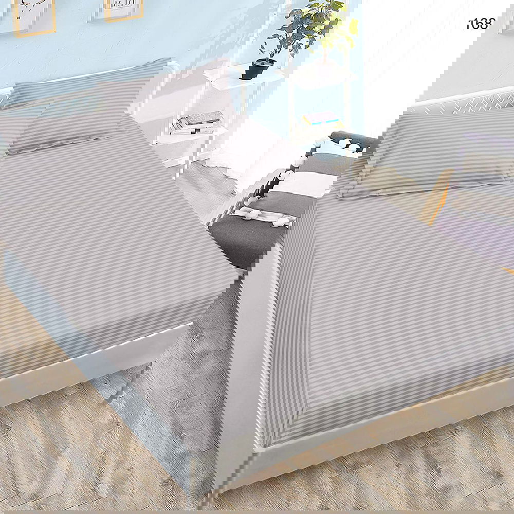 Cearceaf din Damasc cu Elastic - 90x200 + 1 Fata Perna - Gri Deschis - CEDX_K121