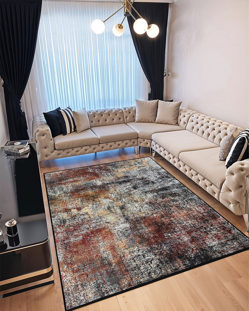 Covor pentru Dormitor 160x230 cm - Model Abstract Carmiziu cu Negru - CVHD015_160x230_CVH