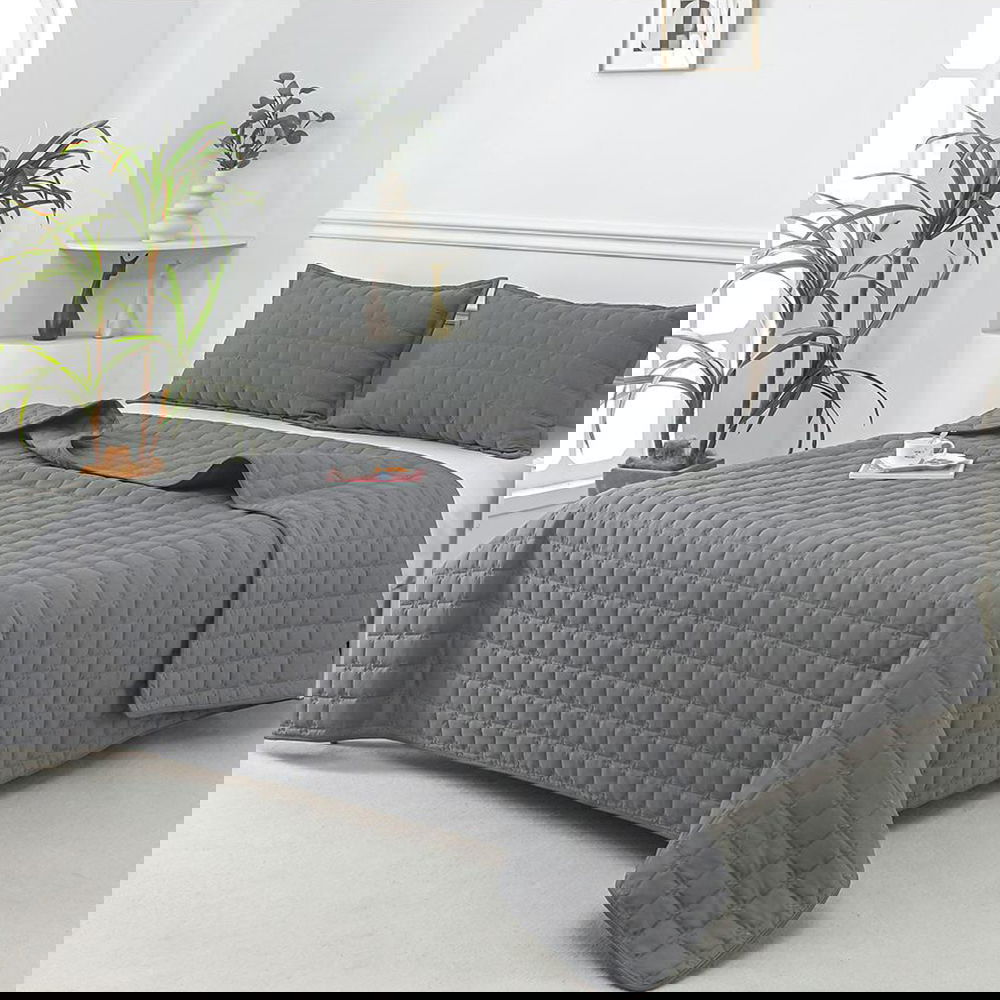 Set 3 Piese Cuvertura de Pat Brodata + 2 Fete de Perna - Gri - CVBBZ_O008