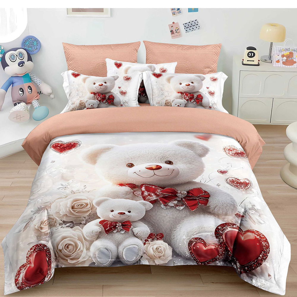 Lenjerie 6 Piese Bumbac Finet 5D - Ursuleți Albi cu Trandafiri - LFDS_A140C