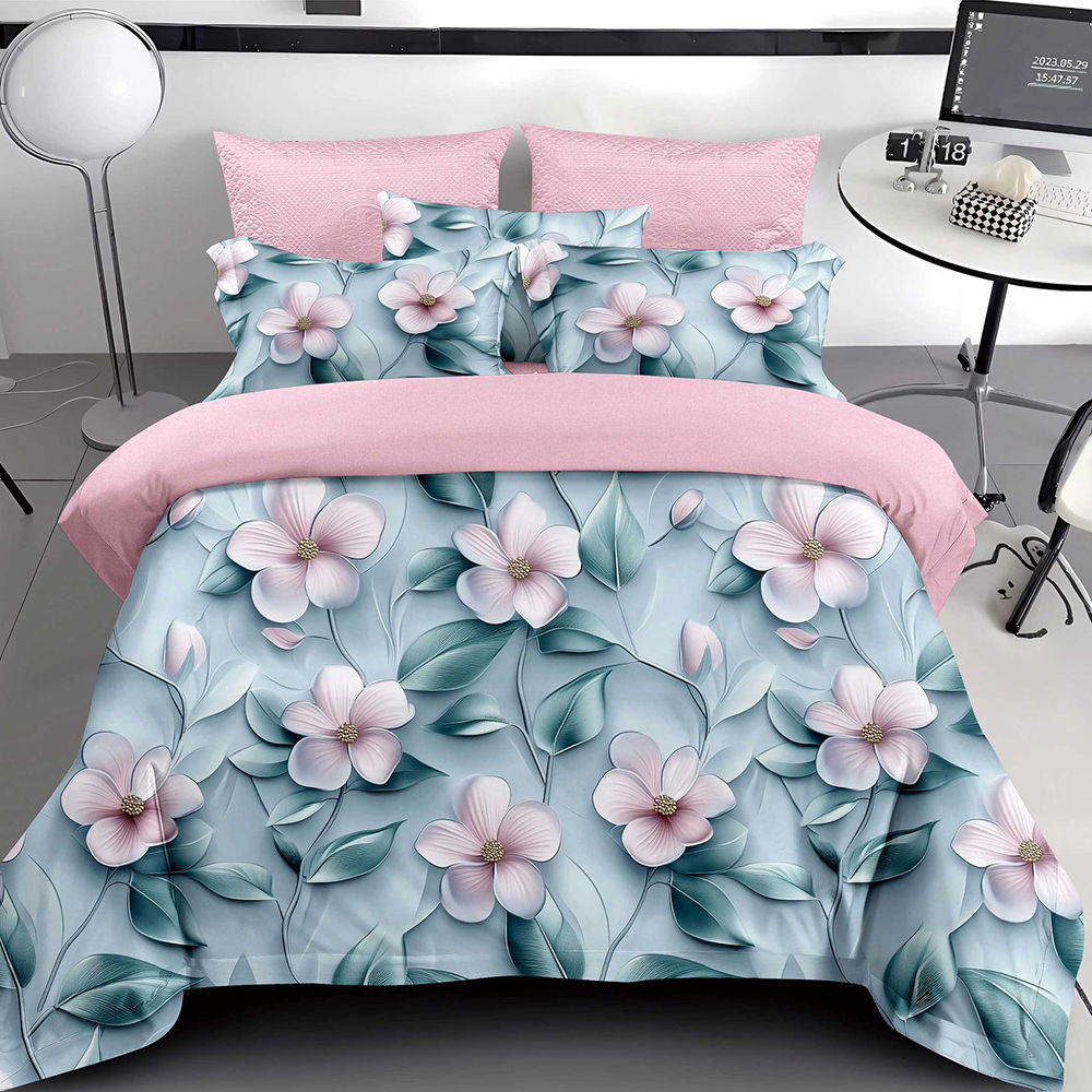 Lenjerie 6 Piese Bumbac Finet 5D - Magnolii Roz - LFDS_A137C