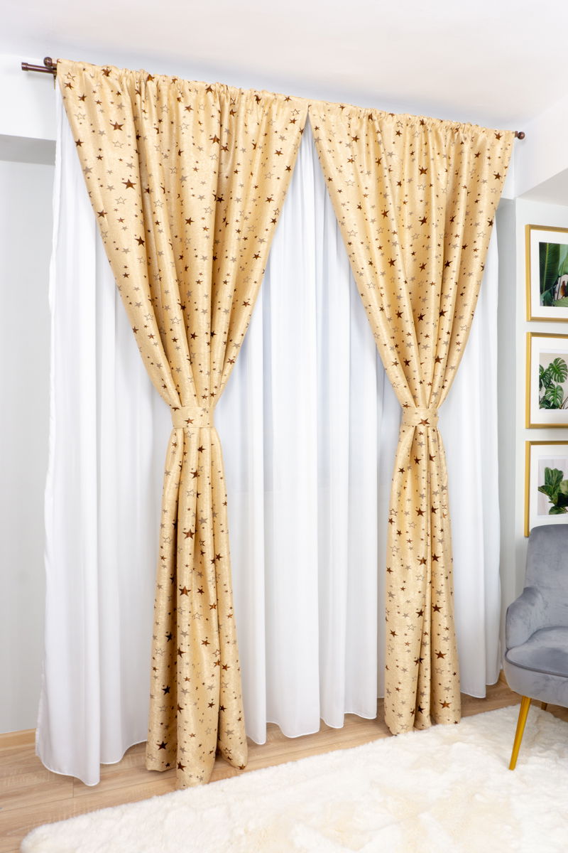 Set 2 Draperii Blackout Cappuccino cu Stelute 150X220 cm cu Tiv Lat - BOTD076_150X220_ATL
