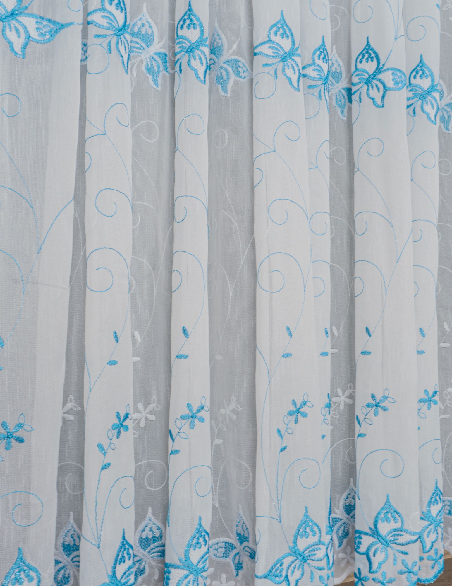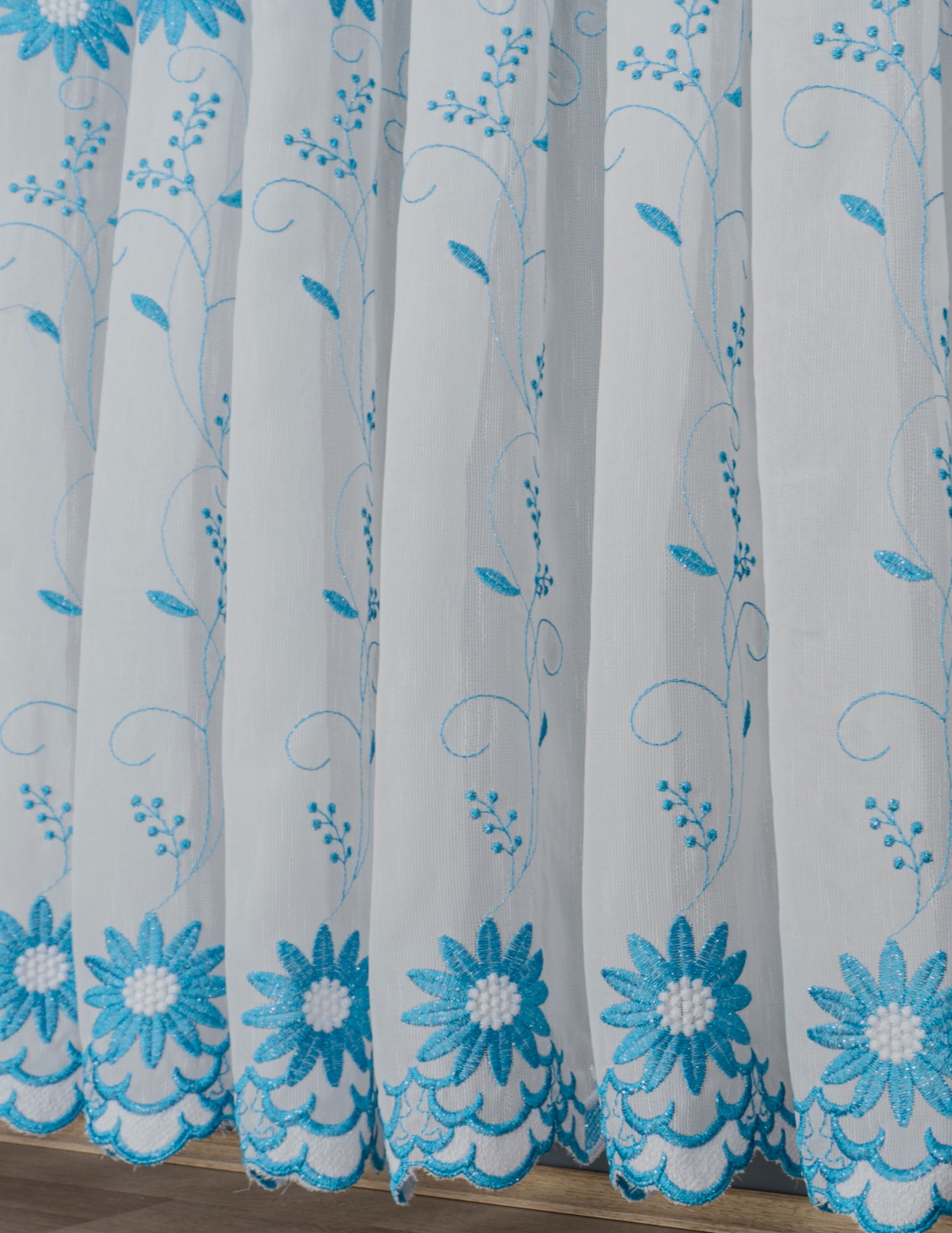 Perdea de Bucatarie Floare de Colț Turcoaz cu Alb - PERDB003B_PLC