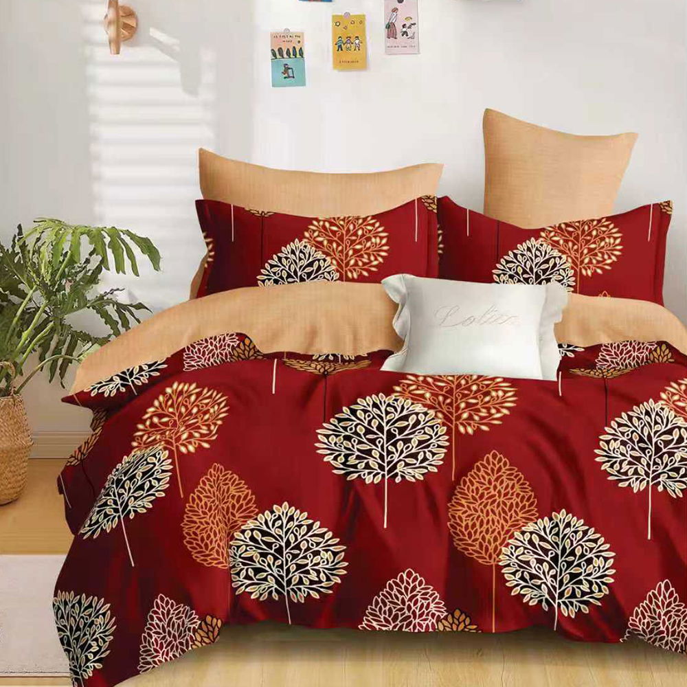 Lenjerie de Pat din Finet cu Elastic 6 Piese - 160/180x200 de Pucioasa - Grena cu Frunze - LFER_A068C