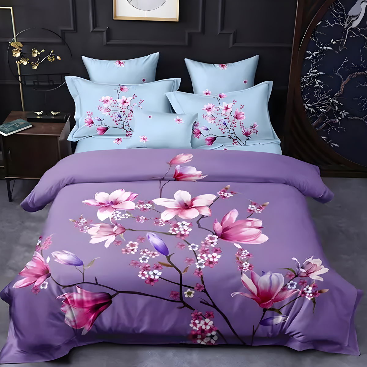 Lenjerie 6 Piese Bumbac Finet 5D - Magnolii Roz - LFDS_A137C