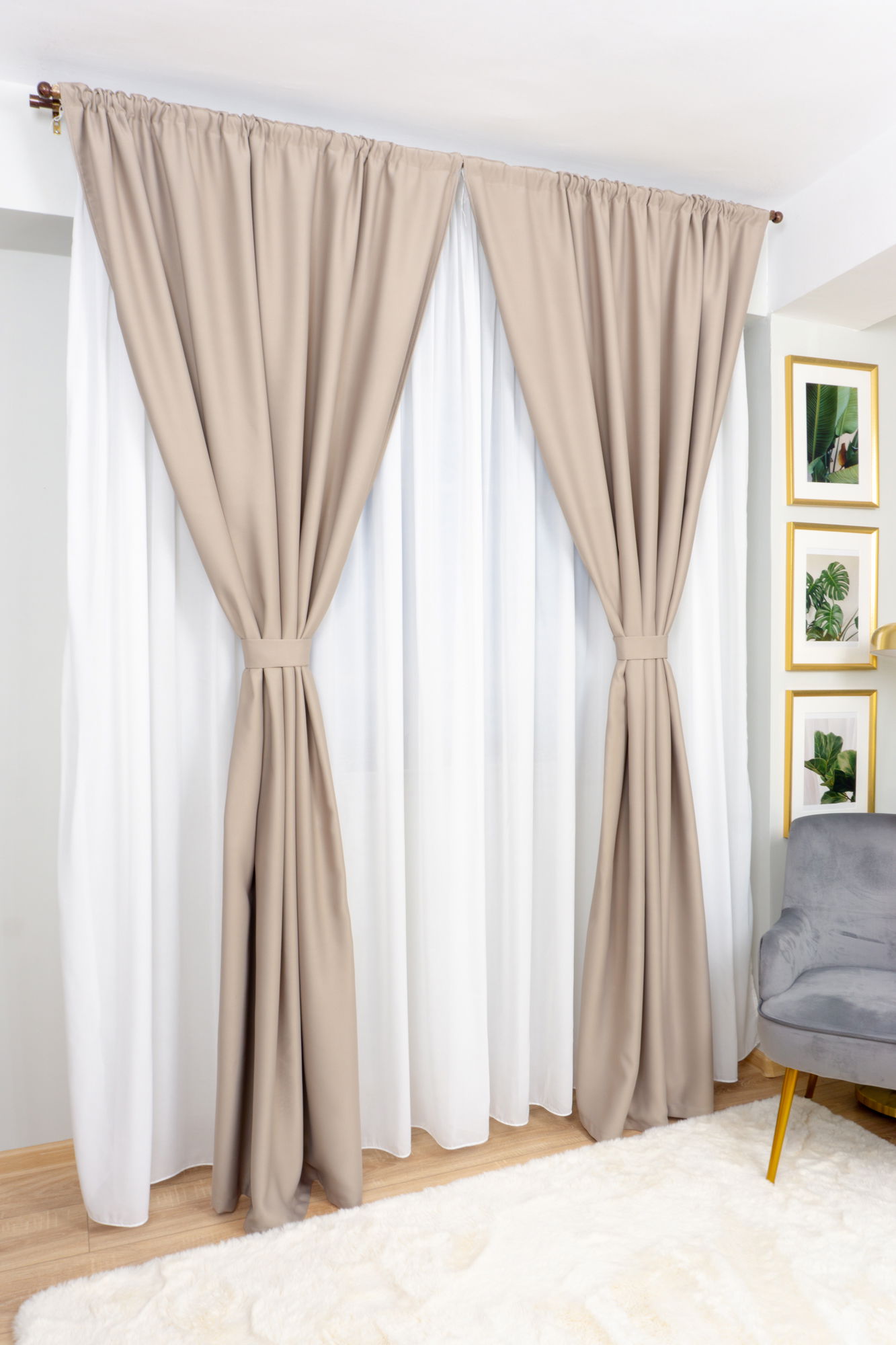 Set Mavis - Perdea Alba Voal PERD007_300x245_D1_20_ATL si Draperii Blackout - Coffee - BOTD002_100X245_A1_15_ATL cu Rejansa Set_ATL