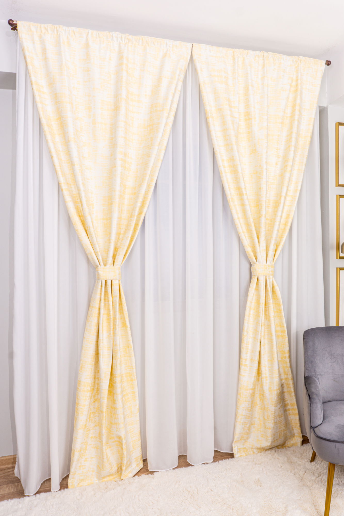 Set Emanuela - Perdea Voal Alb PERD007 300x245cm si 2 Draperii din Catifea Striata Crem Intens - CTFD051 2x145x245cm cu Rejansa Set_EMG